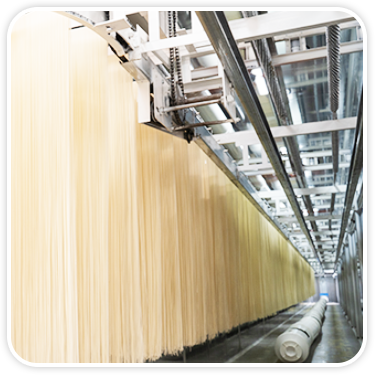 10萬級凈化車間,獨立自動包裝,確保安全衛生和質量符合,物料通過傳送帶運輸,使面條在自動包裝機機械化條件下安全衛士的進行生產